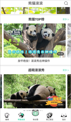 若不小心错过了直播,你可以在【熊猫滚滚】板块中找到各类精彩片段的回放视频;让你不再遗漏熊猫任何一个有趣的瞬间。