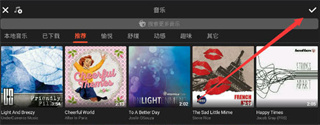 4、从推荐曲库中挑选喜欢的音乐,或选择本地存储的歌曲,点击右上角确认即可完成添加。