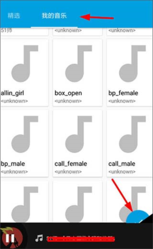 2、点击页面下方的音乐图标,然后选择列表上方的“>”按钮进入音乐库。