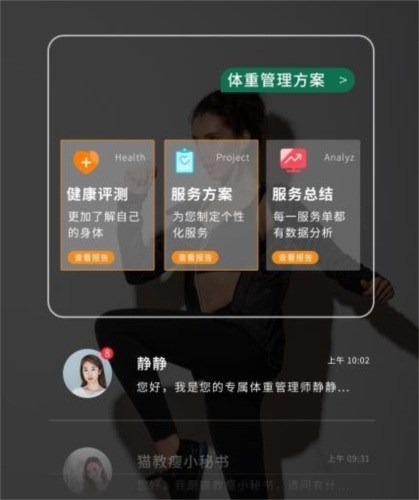 5、配备专属健康顾问,根据用户状况定制个人瘦身方案,提供专业服务;