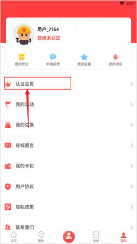 2、进入个人中心页面后,找到并点击【认证会员】选项;