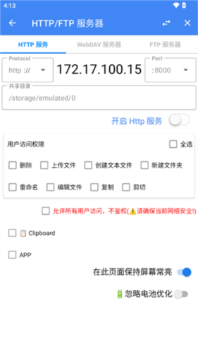5、或者启动WebDAV服务器功能,以便与电脑设备建立连接;