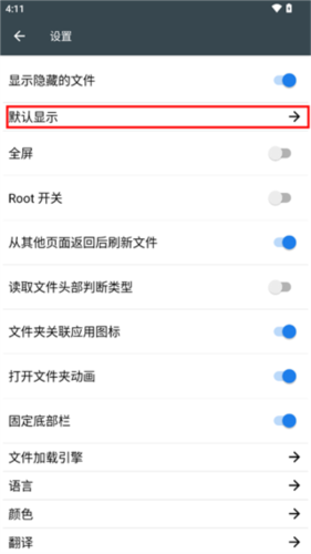 1、打开FV文件管理器应用,在主界面中找到并进入设置选项;