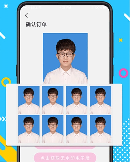 支持修改背景色、添加正装、美白美颜、冲印裁剪及全国包邮服务。