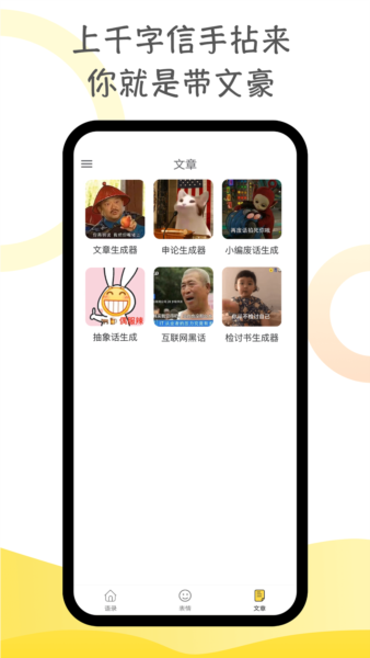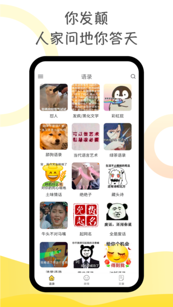 1. 轻松点击软件内的各类话题按钮,就能立刻获得你想要表达的趣味语句。