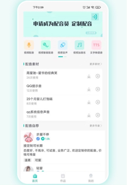 1、配音样例与模板丰富:能满足各类配音需求,让创作更轻松;