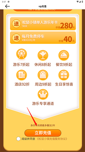成为小镇会员可享受VIP镇民特权,例如免费停车服务,充值步骤如下: