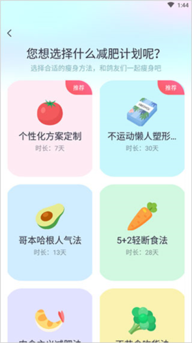 2、依据个人实际情况选择期望的减肥计划类型;