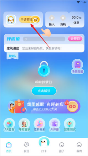 2、每日完成记饮食、记运动、记体重打卡任务即可获得呼啦值;