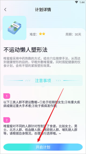 3、仔细阅读注意事项,若符合条件则点击开始计划,否则返回选择其他方案;