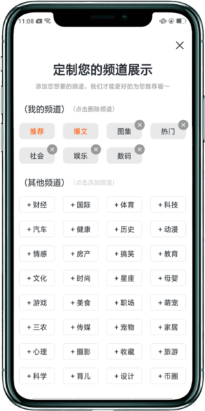 5 支持自主选择关注频道,系统会同步推荐相关联的内容资源;