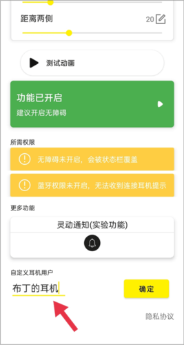 3、找到“自定义耳机”设置项,将设备名称修改为自己蓝牙耳机的实际名称并保存确认;