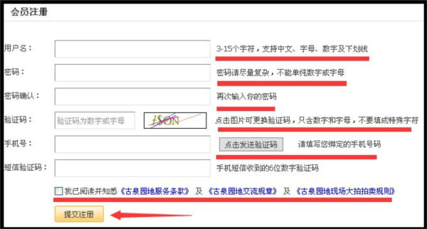 2、进入账号注册页面后,按要求填写会员资料,最后点击提交即可完成注册;