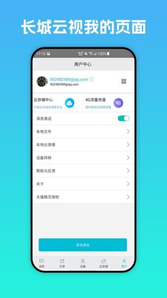 用户中心功能全面,包括存储管理、设备转移和帮助入口,让账号维护一气呵成。