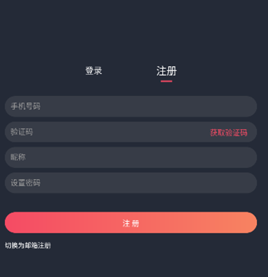 2、进入登录界面后,点击注册按钮,页面将跳转至注册信息填写页。