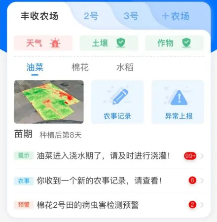 具备农事提示、预警与记录功能,随时掌握农场状况。