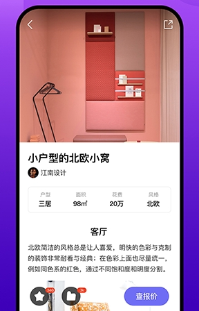 3、用户可在线免费获取初步的装修报价与设计方案。结合自身预算,还能联系设计师进行一对一沟通,获得更个性化的定制规划。