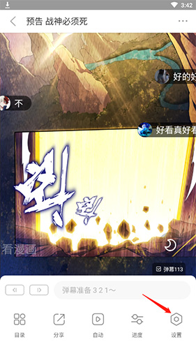 2、在阅读界面点击屏幕空白处,点击右下角“设置”图标。