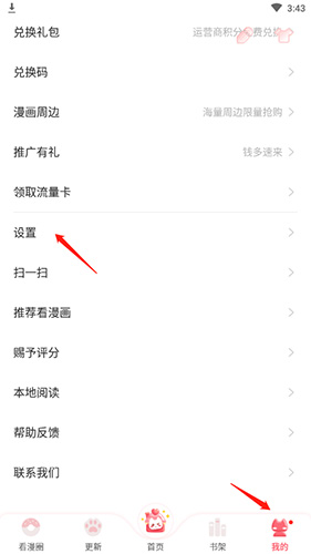 1、打开应用,进入“书架”页面,选择漫画开始阅读。