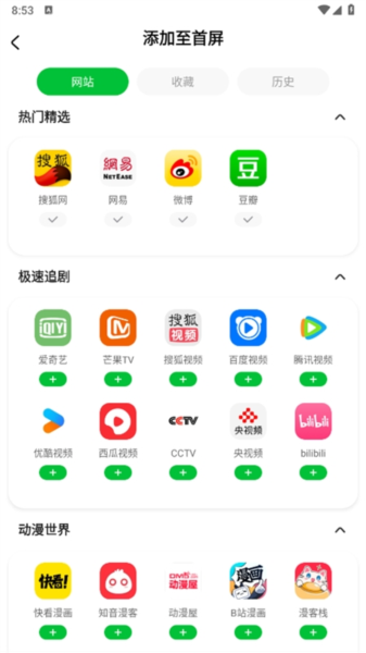 5、点击添加按钮,可将喜爱的网站直接添加至首屏,使浏览更加便捷。