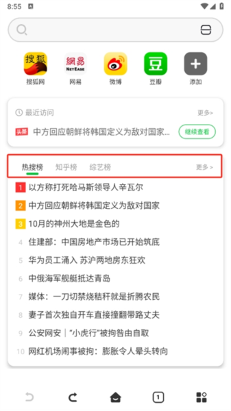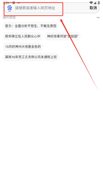 3、点击上方搜索框,输入关键词或网址即可快速获取结果;