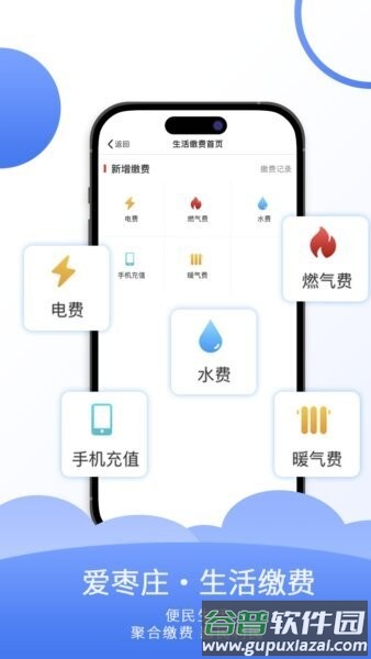 生活缴费支持电费、燃气费、水费、手机充值和暖气费等项目。