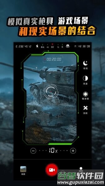 进入主界面后,你会看到默认的瞄准镜模式;如果是在夜间,点一下夜视按钮就能切换到增强模式,提高可见度。