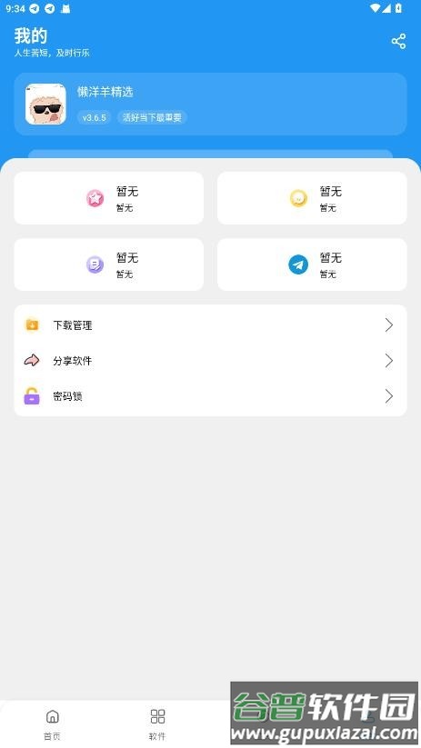 我的页面把设置选项集中起来,包括下载管理、分享和密码保护。
