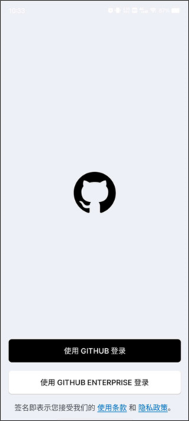 5. 接下来在手机上打开应用,点击“使用GITHUB”进行登录。