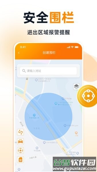 在定位页面点围栏按钮,选定区域并设好半径,开始安全提醒。
