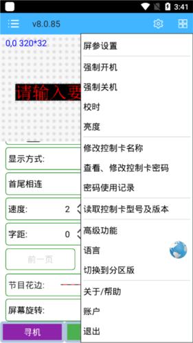 3、打开Ledplay软件,设置屏幕参数并编辑一个简单节目发送;若显示正常则可继续编辑正式内容;若显示异常,可点击软件开关机图标测试;无反应则检查通讯连接;若开关机正常但显示混乱,请核对屏参设置、扫描方式及OE极性等是否正确。