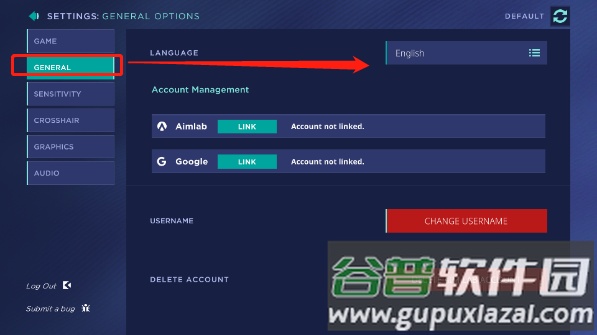 2、切换到GENERAL栏目,找到LANGUAGE选项。