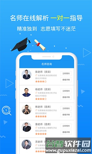 1、平台展示多位指导老师资料,用户可根据需求选择合适的人选进行咨询。