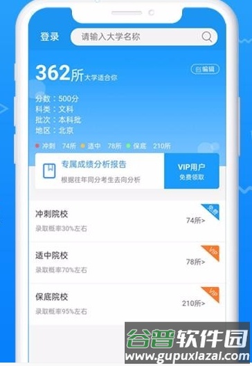 2、录入个人成绩与选科信息后,系统能提供更具针对性的院校推荐。