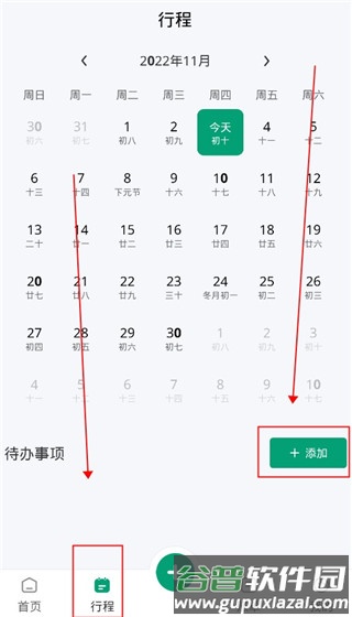 3、点击行程功能,选择添加,将后续重要事项录入,应用会在设定时间发出提醒。