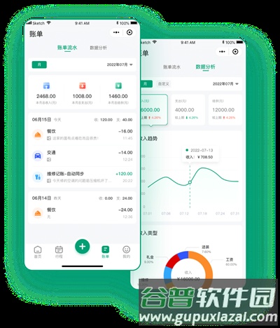 4、所有记账消费明细均在账单页面显示,并可查看相关的数据分析图表。