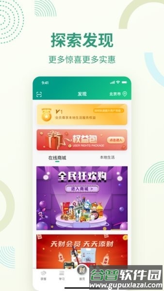 发现商城:展示权益包、活动内容、推广素材和会员服务。