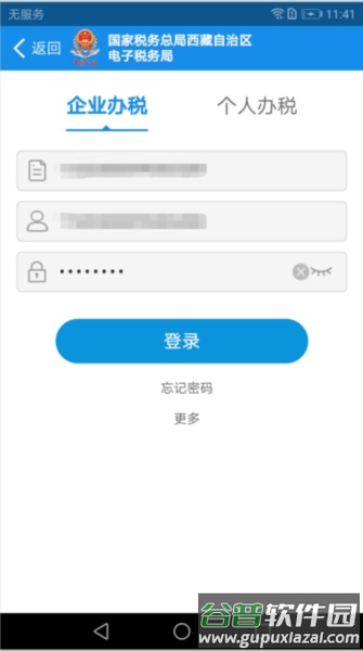 1、启动西藏税务手机app,选择企业办税选项,然后点更多切换到扫脸实名登录。