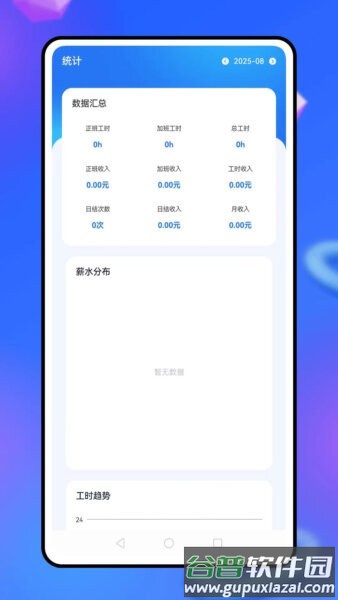 这款app的操作超级简单,打开就能快速打卡。首页直接放了工时打卡、薪资管理和统计入口,一点即用。统计页面会显示当月的总工时、日结情况、加班比例和工资分布图,让你一眼看清数据变化,便于日常对比。账本部分分成工作、生活或其他类别,帮你分开记录支出,避免混淆。计划功能把加班记录和财务目标结合在一起,便于一步步跟踪进度。界面设计注重手机使用,按钮大按起来顺手,即使信号弱也能正常运行,确保你在外地也能用得上。