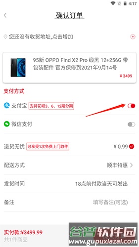 小白有品支持使用支付宝支付订单,具体操作步骤如下。
