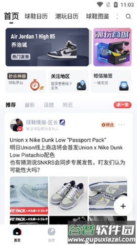 3、首页展示其他用户分享的潮鞋动态与购买信息;