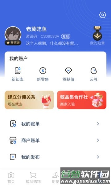 7. 个人账户详情 在“我的”页面,查阅学分、贡献值和勋章等资产,还能看账单、商户记录或申请商家功能。