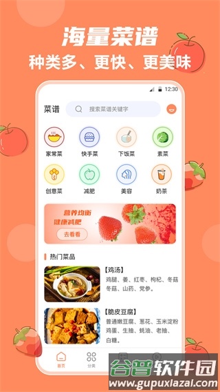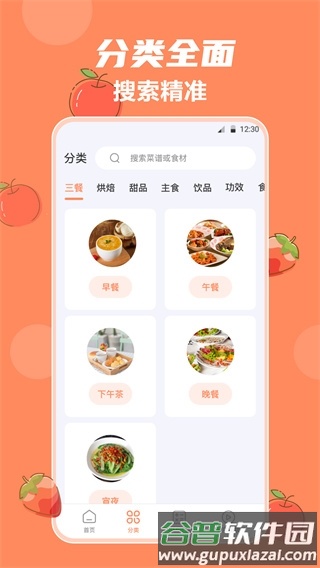 2、操作简便,菜谱按类别分类,支持关键词检索,节省查找时间;
