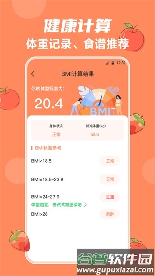 4、内置健康饮食与体重计算工具,提供个性化饮食建议。