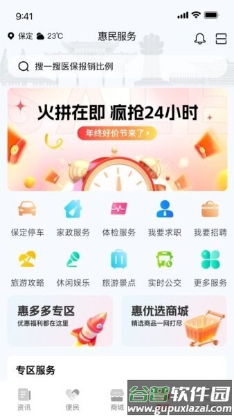 3. 惠民专区更实用:汇集停车、家政、体检、求职招聘、旅游攻略、实时公交等服务,针对日常生活中的常见需求。