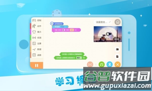 4. 图形化编程:通过积木模块构建程序,涉及控制、动作、显示、感应、计算等,轻松实现判断和循环。