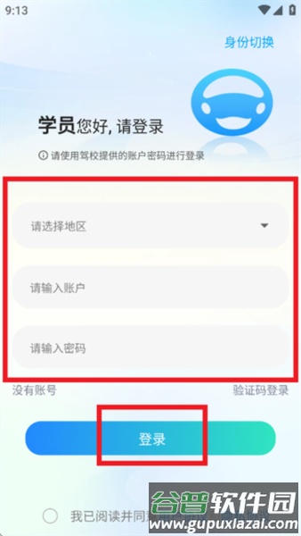 3、选择所在地区,输入报名时登记的手机号,密码默认为身份证后八位,勾选同意相关协议后点击登录即可。