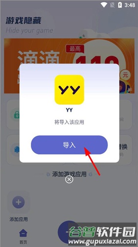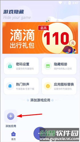 1、打开隐藏游戏计算器应用,登录后进入首页,在隐藏显示界面点击添加应用程序按钮。