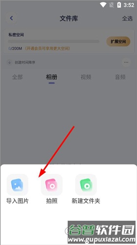 2、点击添加符号创建新文件夹,从手机相册选择希望导入的照片或图片。