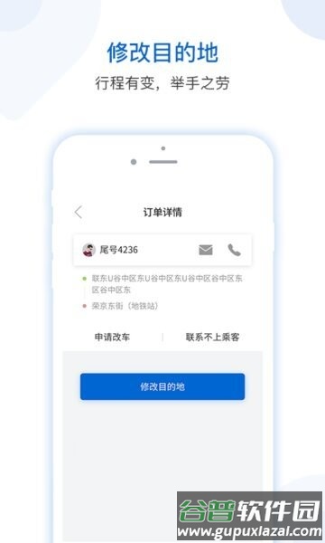 订单详情页里,你可以查看到乘客信息、联系方式、上下车点和费用情况,还支持直接修改目的地,减少和乘客的反复沟通。